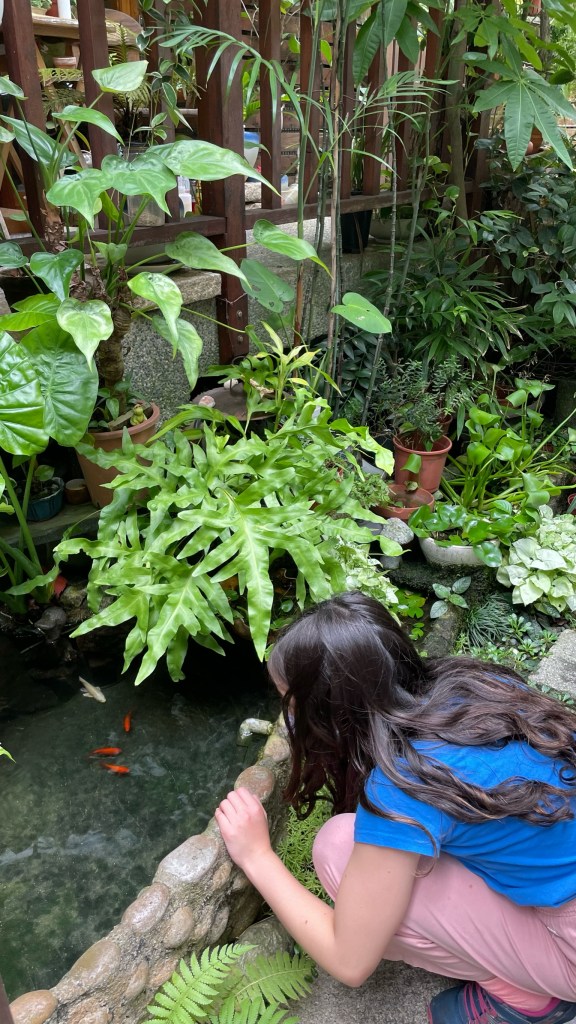 After settling in Hsinchu, my family and I started looking around. We live next to a very busy road called GuangFu Rd. There are lots of interesting restaurants along the road. We found the restaurant we first went to in Hsinchu. It is a dim sum place called Chumei. It also has really good food and deserts! We finally went to the Hsinshu zoo. Its a small zoo about 1-2 miles from our apartment. We ate lunch at the zoo too. Just 3-4 weeks ago we found a very hidden-in-plants restaurant tucked in next to Guang Fu Rd. We don’t know its name so we just call it the Hidden Koi since it has cute little koi fish near the entrance. The food(noodles, meat, rice) is pretty good and their soup broth is very clear and yummy!