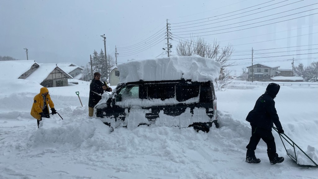 The white top of the van is all snow!