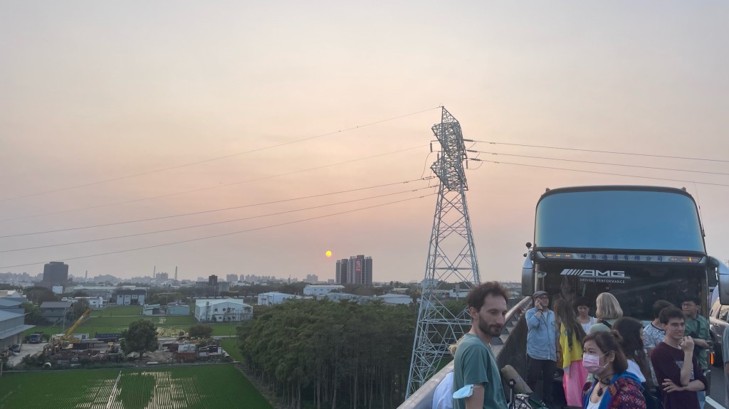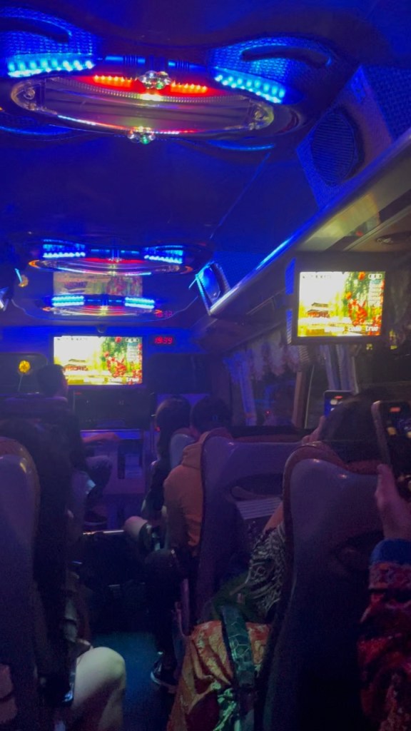 It was about ten-twenty minutes before the truck dropped us off at the curb of a street then drove away. A minute later, an empty bus came driving toward us. People around me cheered for the new bus, and climbed on. Then, in all the excitement and confusion, our busmates felt linked and did some karaoke!